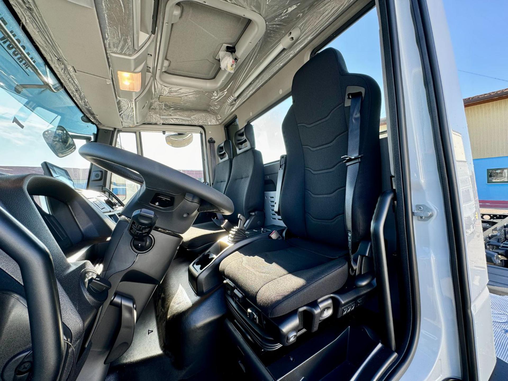EURO 6E, cambio manuale 9 marce, sospensioni posteriori balestrate, bloccaggio differenziale, presa di forza ZF, expansion module, LDWS invasione corsia, EVSC antisbandamento, EBS, immobilizer, freno motore, cruise control, climatizzatore manuale, sedile conducente Top Confort molleggiato e bracciolo, vetri elettrici, specchi elettrici e riscaldati, chiusura centralizzata con telecomando, radio DAB Bluetooth, telecamera posteriore, volante multifunzione, luci diurne LED, tettuccio apribile, visiera parasole, fendinebbia, serbatoio carburante 200litri, serbatoio ADBlue 30litri, filtro carburante riscaldato, essicatore riscaldato, serbatoio AD Blue riscaldato, protezione radiatore, cronotachigrafo digitale 4.1, avvisatore acustico retromarcia, paraurti anteriore in lamiera, retine parafanali, paraincastro posteriore tubolare, masse 1°asse kg 7500 2°asse 12.000kg, pneumatici 315/80 R 22.5 oltre altri accessori di serie.