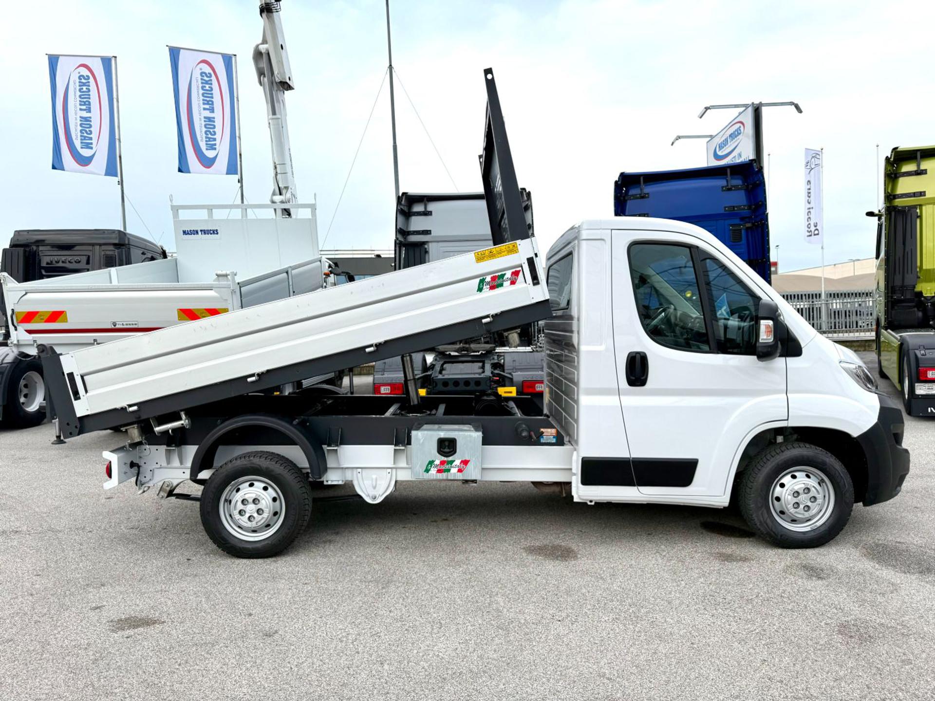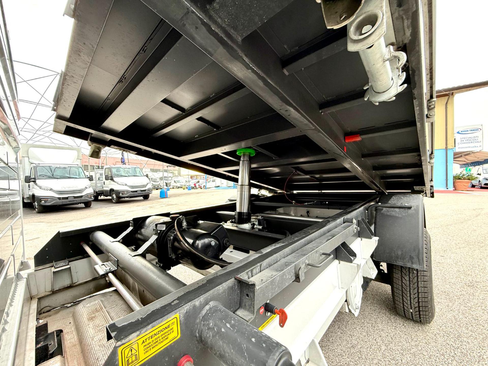 Allestito con cassone ribaltabile trilaterale da misure interne mt 3.10 x mt 2.04, sponde in alluminio da cm 40. Portata complessiva kg 3.500; Portata utile kg 1.150 circa.