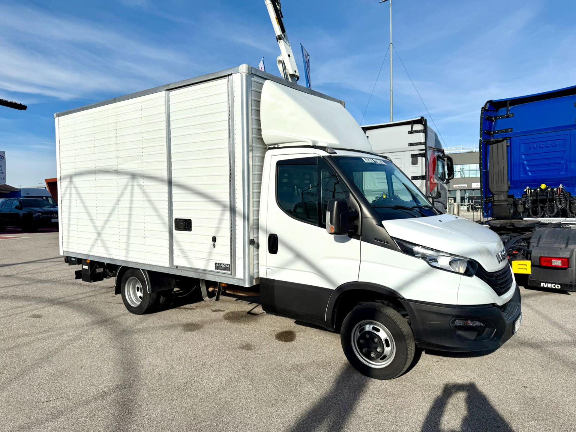 Allestito con cassa furgonata da misure interne mt 4.20 x mt 2.10 x mt 2.22 con porta laterale e sponda caricatrice idraulica a battente da 800 kg. Portata complessiva kg 3.500, Portata utile circa kg 600.