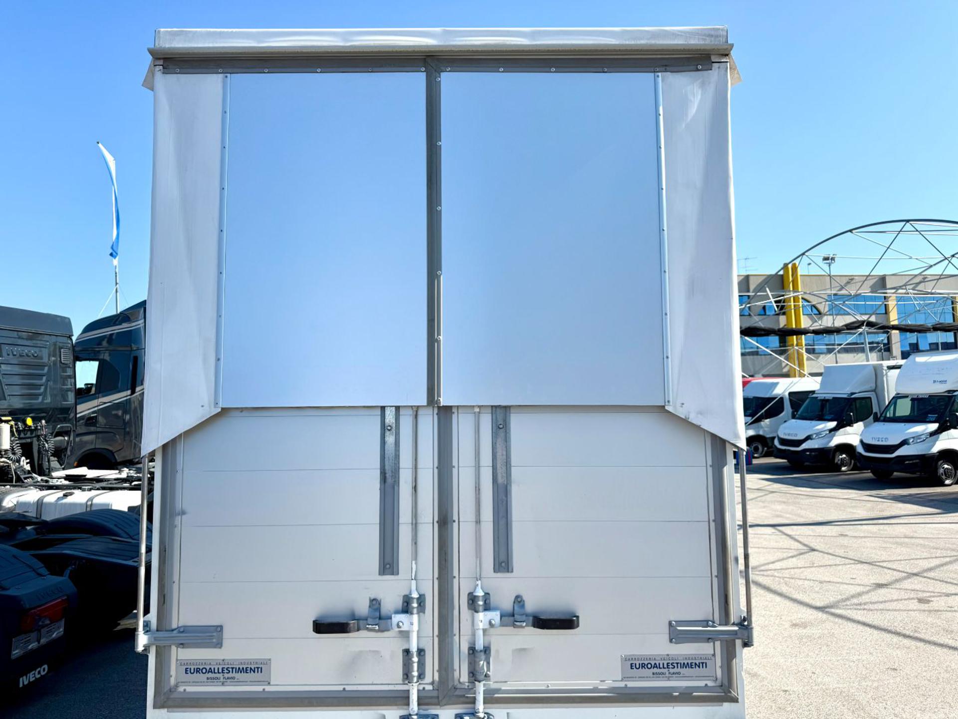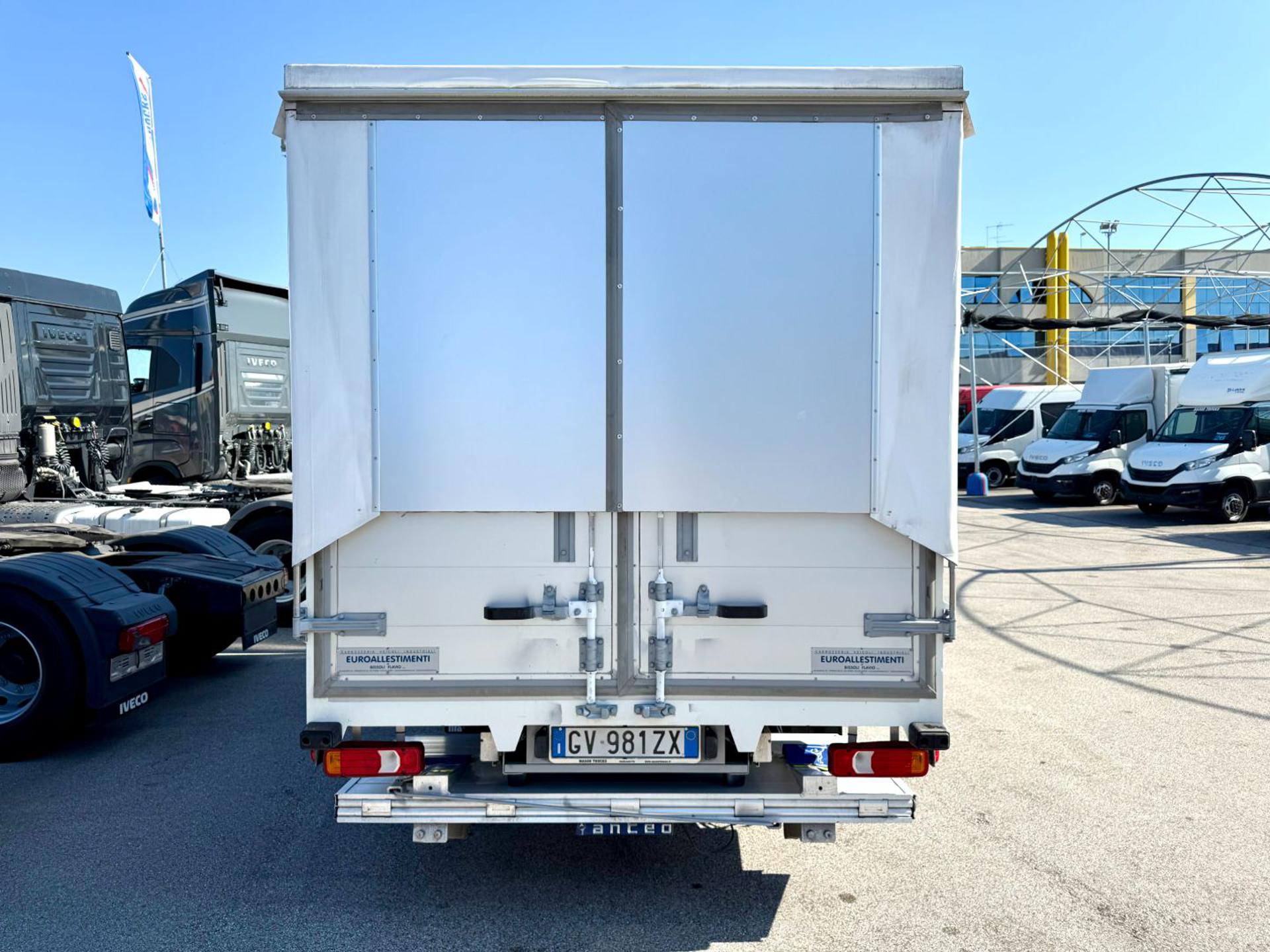 Allestito con centina registrabile modello semifurgone da misure interne mt 4.50 x 2.09, altezza interna con centina a riposo mt 1.90, pareti furgonate da mt 1.50, fondo multistrato, porte posteriori telescopiche e completo di sponda idraulica retrattile da 800kg con comandi a piede. Portata complessiva kg 3.500, Portata utile circa kg 500.