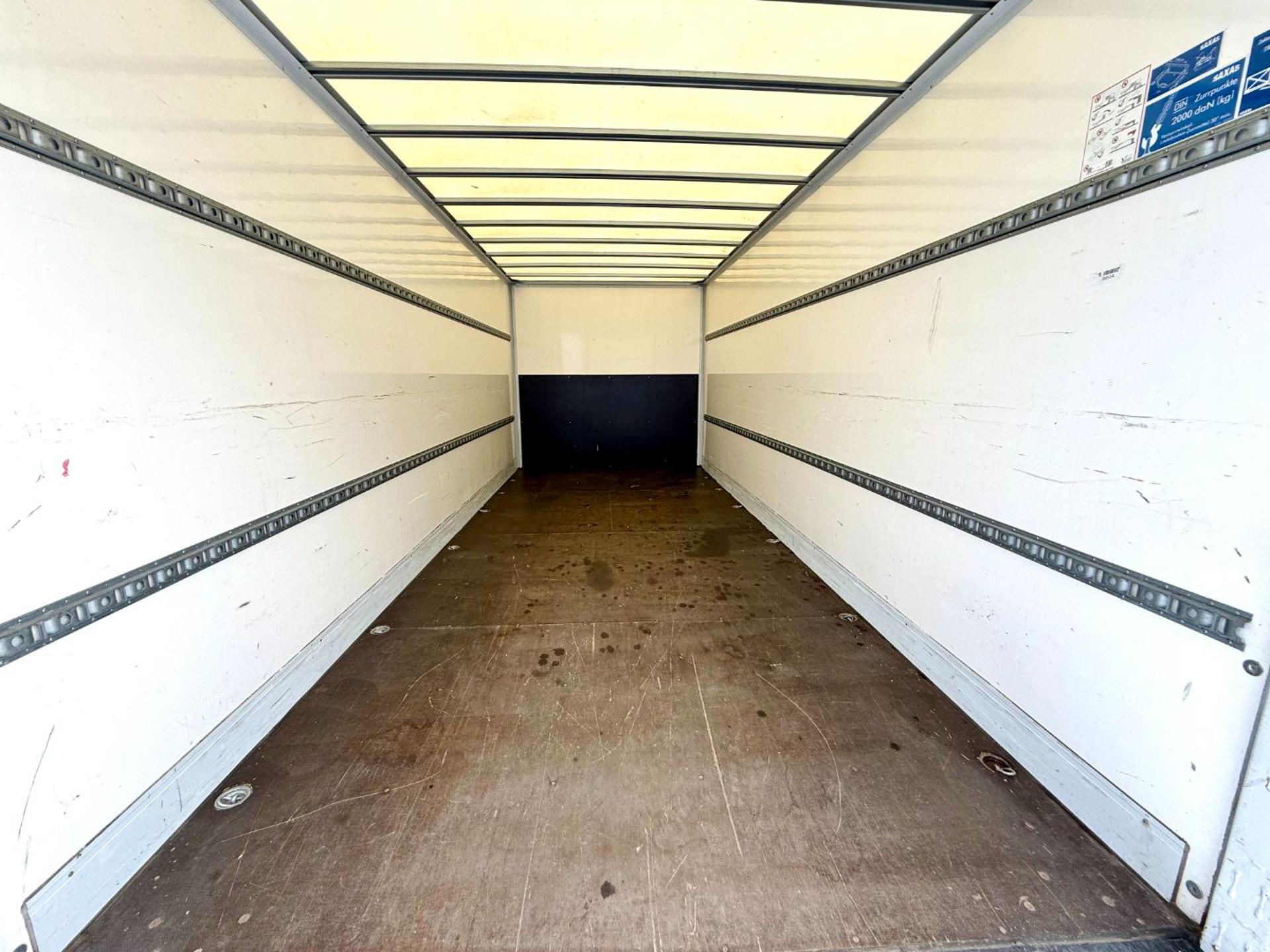 Cassa furgonata da misure interne mt 6.05 x mt 2.48 x mt 2.38 circa, fondo in multistrato, ganci a scomparsa, completo di sponda idraulica a battente da 1.000 kg. Portata complessiva kg 7.490; Portata utile circa kg 2.400 circa.