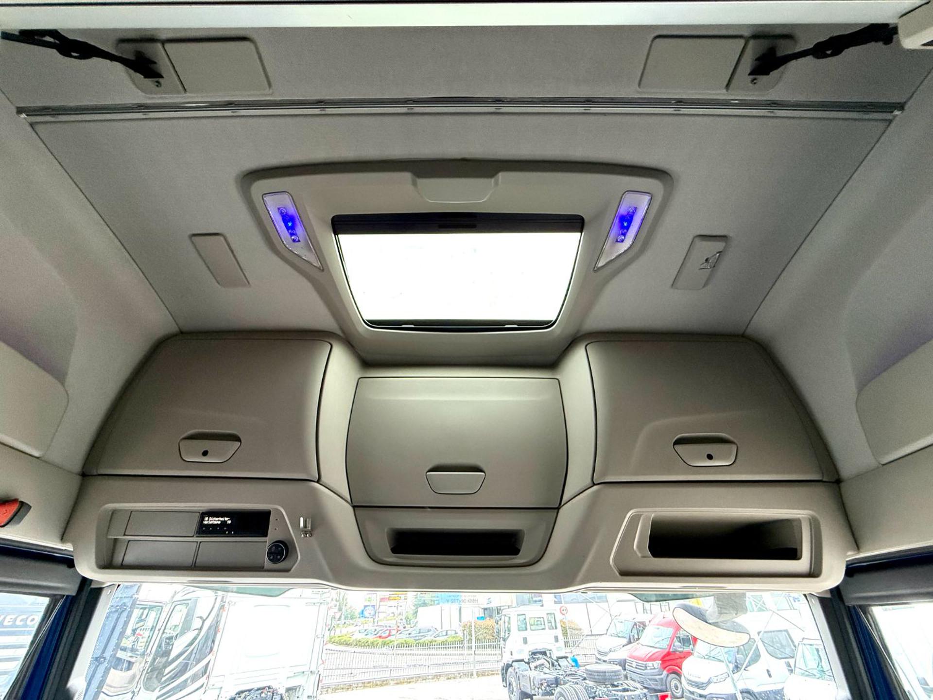 EURO 6D, motore Cursor 11, 480 cv, cambio automatico, sospensioni Full Air, fari Full Led, Intarder, Cruise Control, LDWS, Infotainment Full Touchscreen Display, Navigatore, climatizzatore automatico, climatizzatore statico, webasto, sedile conducente molleggiato riscaldato e ventilato con bracciolo, sedile passeggero girevole, chiusura centralizzata, Safety Lock, vetri elettrici, specchi elettrici e riscaldati, frigo, 2 letti, tettuccio apribile, visiera parasole, tachigrafo digitale oltre ad altri accessori di serie.