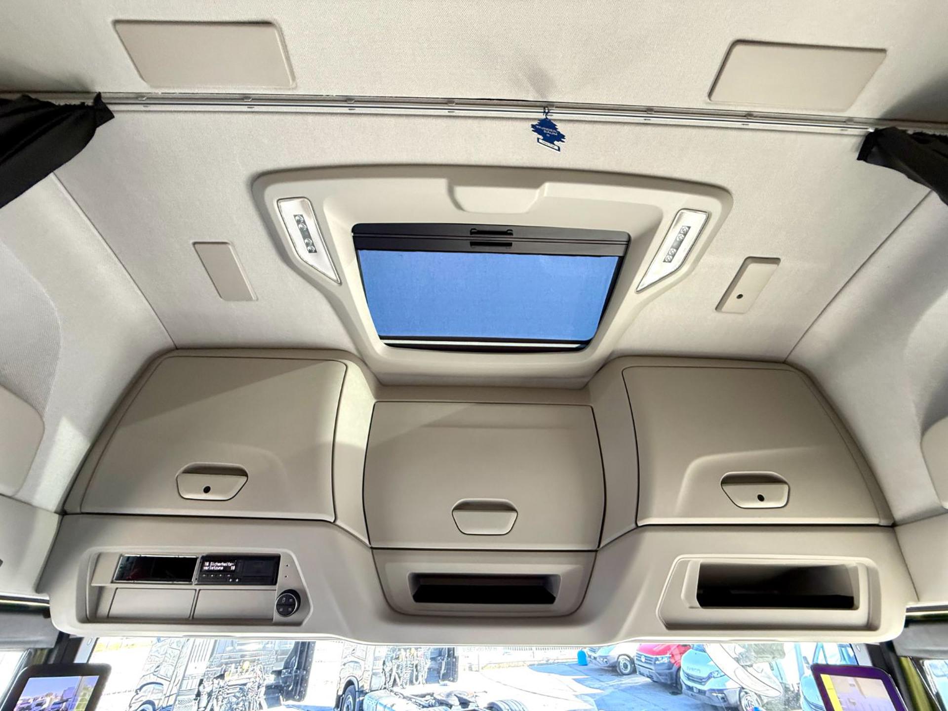 EURO 6E, motore Cursor 13, 580 cv, cambio automatico Hi-Tronix, colore VERDE ECO metalizzato, sospensioni pneumatiche Full Air, fari Full Led, specchi retrovisori Mirror Cam, Intarder, Cruise Control Adattivo, LDWS, AEBS, Hill Holder, ISA assistenza intelligente alla velocità con riconoscimento segnaletica, Infotainment Full Touchscreen Display 10", controllo automatico velocità GPS Hi-Cruise, ACC Cruise Control Adattivo, LDWS + funzione sterzo correttivo CSF, telecamera retromarcia con sistema monitoraggio ostacoli, BSIS monitoraggio angolo cieco dx, climatizzatore automatico, climatizzatore statico, webasto, chiusura centralizzata, vetri elettrici, specchi elettrici e riscaldati, sedile conducente Hi-Confort in pelle molleggiato riscaldato e ventilato con supporto lombare, sedile passeggero girevole in pelle, Safety Lock, frigo, 2 letti, fendinebbia, TPMS sensori pressione pneumatici, tettuccio apribile, visiera parasole, tachigrafo digitale oltre ad altri accessori di serie.