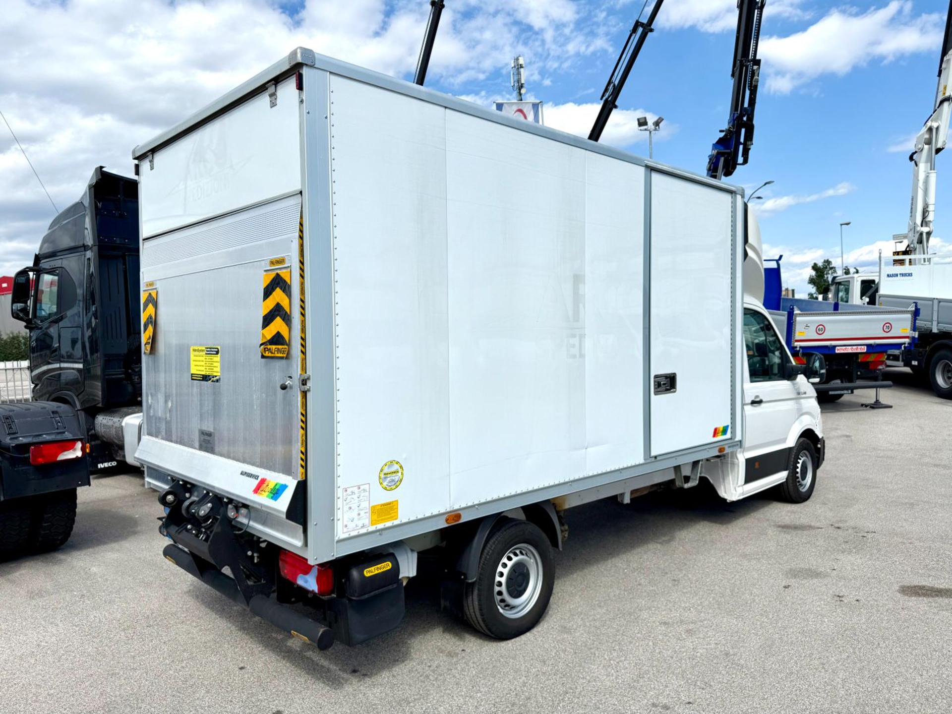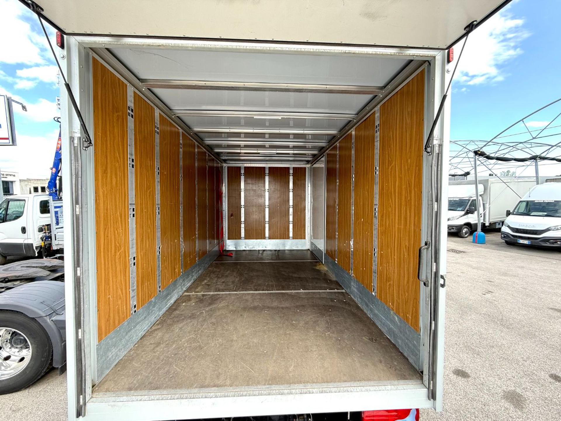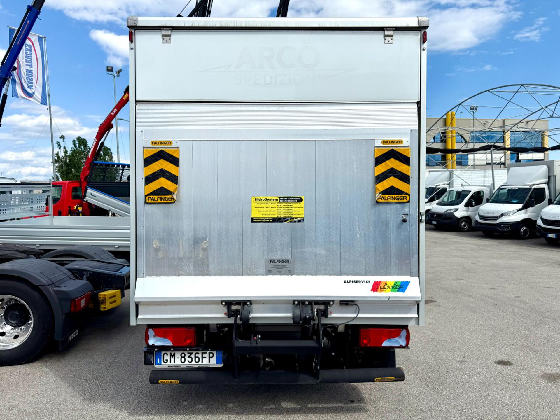 Cassa furgonata da misure interne mt 4.20 x 2.12 x 2.12, completo di sponda idraulica da 750kg con piedini stabilizzatori. Portata complessiva kg 3.500, portata utile kg 950.